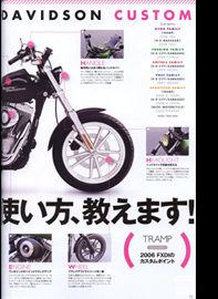 「はじめて手に入れたハーレーでの初めてのカスタム」。これがこのダイナのカスタムのコンセプトである。マシンの乗り味を大きく変えるエンジンやサスペンション、ブレーキなどのカスタムは次のステップとして、まずはストックモデルを存分に堪能すべくトランプにより手が加えられている。(一部抜粋)