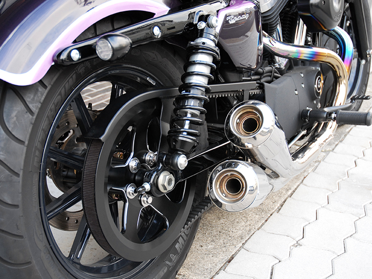 S/C Belt guard、S/C Light Fender(ペイントカスタム)、Sparto Tail Lamp(Black)、S/C Light sproket Type2、TMF-016E GlowEmit、ソロシート(カスタム)、TBS-024(Black)、リアショック(BLS-280)、各種ペイント
