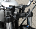 スポーツ走行やローダウンなど、車高調整時の微調整に必要なスプリングプリロードを フォークを分解することなく調整するためのパーツになります。 また、機能だけでなく、ビジュアル的にもレーシングなイメージを与えるパーツになります。