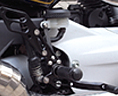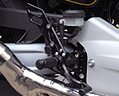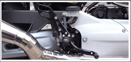 XRのレーシングマシンとしてのポテンシャルを引き出すために開発された、バックステップです。 アルミビレット製でノーマルより大幅な軽量化。 ステップポジションは可変タイプ。5ポジションをライダーの好みで選択可能。 取り付けに関しては、ブレーキラインなども変更することなく、ボルトオン取り付けできます。